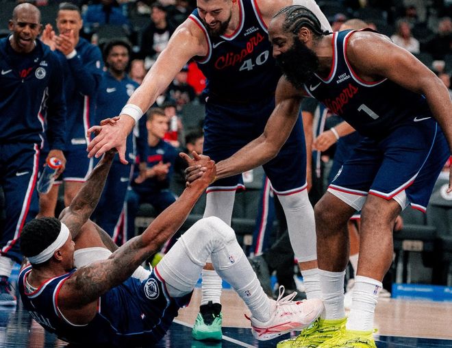 快船上賽季被掘金淘汰出局后,管理層做了一個關鍵決定,就是用鮑威爾到期合同,從爵士換來了科林斯,這樣就能把倫納德徹底解放,來到三號位所面臨的防守壓力更小。而快船把鮑威爾的得分黃金坑,寄托在被太陽買斷的比爾身上。22年夏天,比爾和奇才達成5年2.52億超級頂薪合同,23年被送到太陽,但是比爾+布克+杜蘭特的組合讓人失望。在比爾還剩兩年薪資(分別為5367萬+5713萬)的情況下,選擇買斷,延期5年支付。而在哈登的招募下,比爾最終2年1100萬加盟快船,新賽季年薪530萬,預定首發位置。